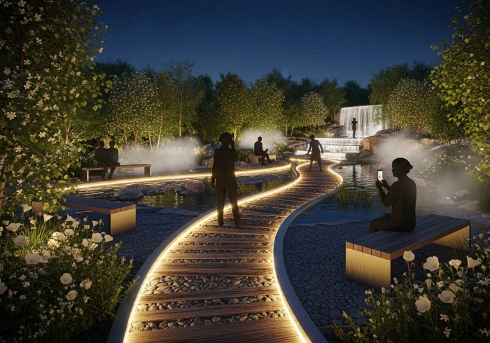 Detour Destinations sangat diminati untuk konten media sosial. Landscape designers dapat membuat titik-titik visual menarik dengan pohon unik, batu alami, atau air terjun mini yang tetap mempertahankan kesan alami dan otentik. - Integrasi Air dan Elemen Alam Lainnya