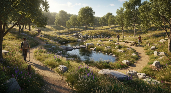 Penggunaan tanaman lokal tidak hanya mendukung keanekaragaman hayati, tetapi juga menciptakan estetika yang autentik. Misalnya, menanam flora khas daerah setempat di jalur hiking atau area piknik dapat memperkuat identitas lokasi. - Jalur dan Pemandangan yang Dirancang dengan Cermat